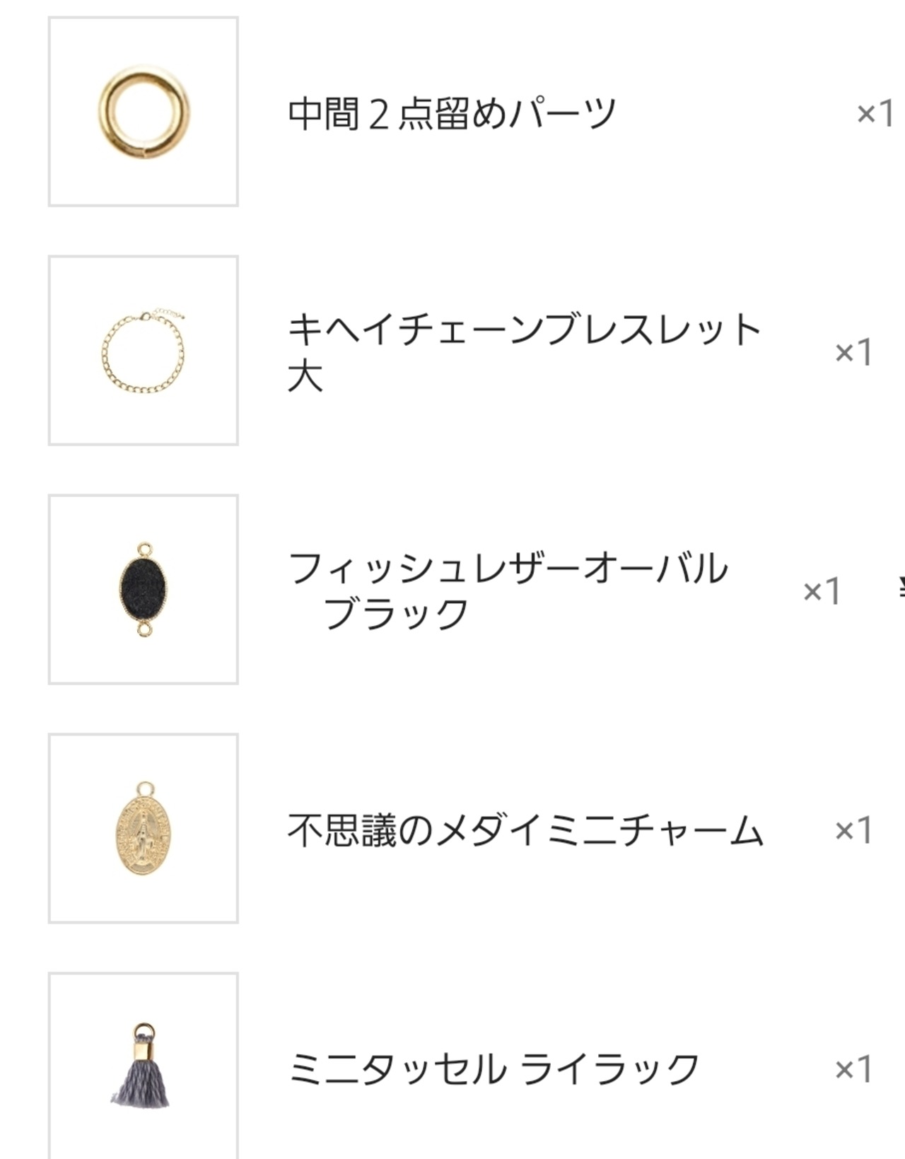 不思議のメダイといミニチャームとタッセルはライラック色を使用。